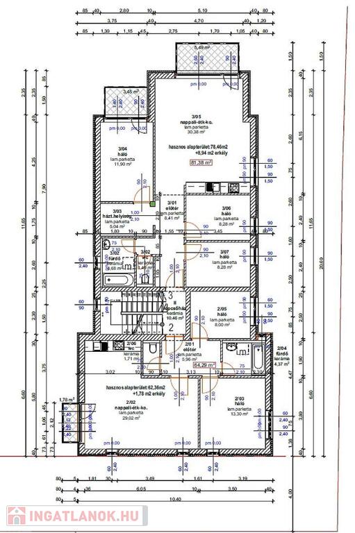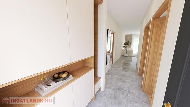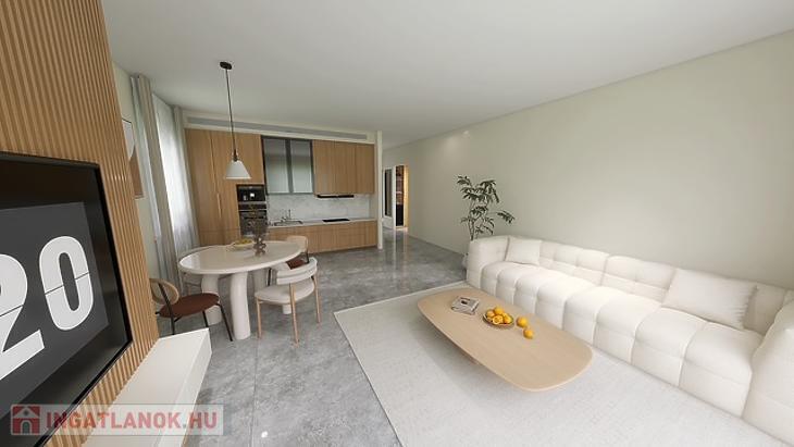 Egy tágas amerikai konyhás nappali, 3 háló, fürdőszoba és egy 9 m2-es erkély kerül kialakításra.