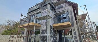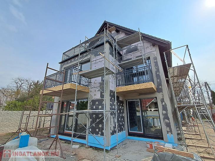 A társasház 4 lakásos lesz, 2 szintes, téglaépítésű, betonfödémes, 10 cm-es grafitos külső szigeteléssel is ellátnak majd.