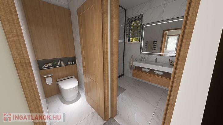 Hőszivattyús fűtés-fűtés rendszer (mennyezeti) és padlófűtés biztosítja a meleget. Az ár tartalmazza a burkolatokat, szerelvényeket és szanitereket is.