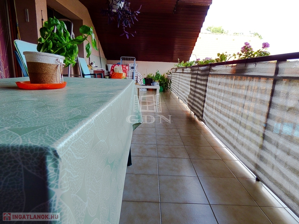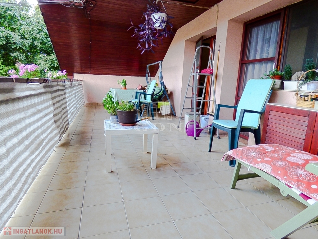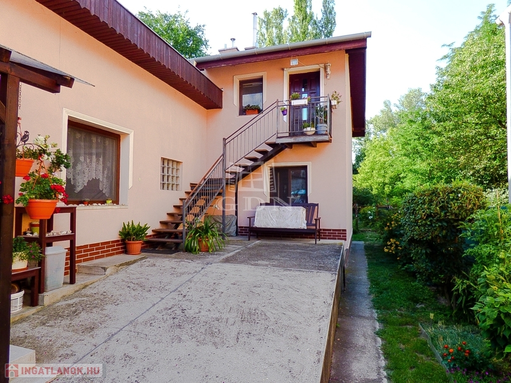XVII. kerületben Rákoscsaba - Újtelep csendes, aszfaltozott utcájában, 3 lakásos, 1980-ban épült, szigetelt (5 cm dryvit) házban, 105 nm-es (Bruttó 145 nm), I. emeleti, 3 szobás, jó állapotú, gáz cirkó fűtéses (radiátoros hőleadással), fa thermo nyílászárós, alacsony fenntartási költségű, nagy teraszos (24 nm), KERTKAPCSOLATOS, rugalmasan birtokba vehető, TEHERMENTES lakás eladó.
