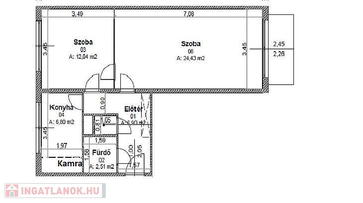 nappali, hálószoba, konyha + étkező, kádas fürdőszoba, mellékhelyiség, előszoba, közlekedő, erkély.