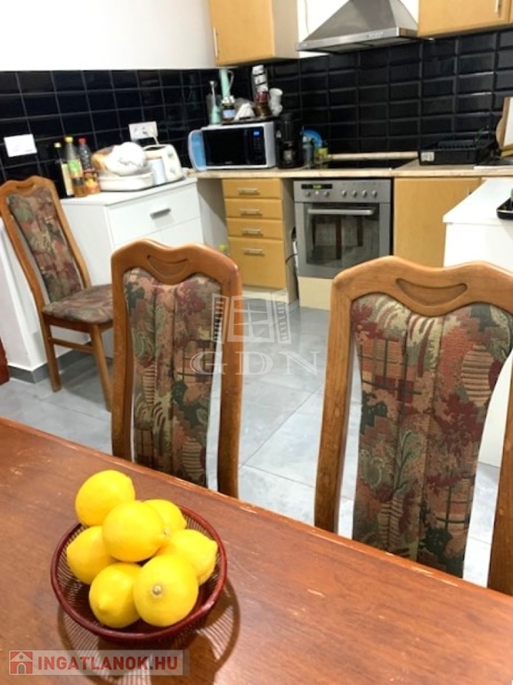A belső kétszintes lakásba lépve a földszinten, az előszobából, lépcső vezet az emeletre, majd tovább haladva az ebédlős konyhából nyílik a felújított, zuhanyzós fürdő, illetve egy kamra, ahonnan a pincébe juthatunk.Az emeleten, nagy nappaliból nyílik a két szoba és a kádas fürdőszoba.