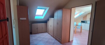 - Az előtérben és a nappaliban praktikus szekrények találhatók.
