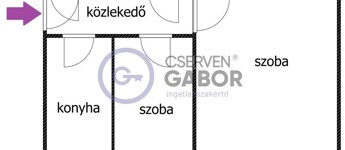 Az ingatlan 43 m2-es lakóterülettel rendelkezik, ami magába foglal egy kimondottan tágas nagyszobát, egy külön bejáratú, cirka 6m2-es félszobát, vele szemközt a fürdőt, ami együtt van a WC-vel, továbbá a bejárattól balra a konyhát és jobbra a spájzot.
