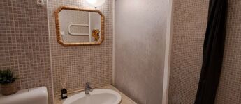 A fürdőszoba és a wc egyben van, egy nagyobb zuhanyzó is helyet kapott.
