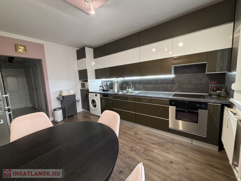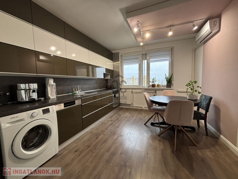 Debrecenben, az István úton, a Tócóskert kedvelt részén eladó egy 63 nm-es, 1+2 félszobás, 9. emeleti, teljes körűen felújított lakás, kiváló elosztással. Az átalakítás során tágas, egybenyitott konyha-étkező került kialakításra, a hálóból külön dolgozó/gardrób nyílik – ideális fiatal pároknak vagy diákoknak is.