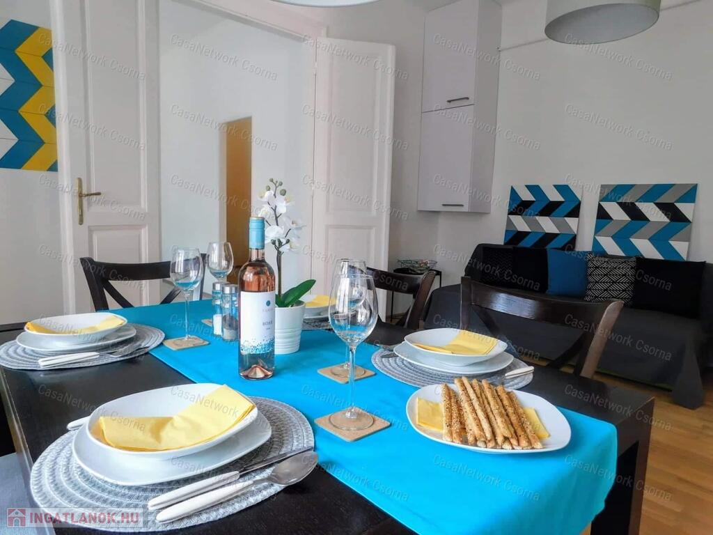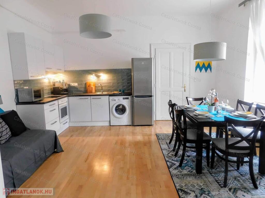 Győr szigetben, a Bercsényi liget 52. szám alatt, öt lakásos társasházban alacsony rezsijű, földszinti, téglaépítésű 74 m2-es polgári lakás eladó. Az ingatlan rendkívül jó alaprajzi elrendezésű. A lakás egy a lépcsőházból nyíló lakáshoz tartozó gangról nyílik. Egy amerikai konyhás nappali, két hálószobából, egyik hálószobából nyíló gardróbból, egy zuhanyzós és wc-t is tartalmazó fürdőből és egy különálló wc -ből áll. A fürdő és a wc ( light hof ) légudvarra szellőzik. A meleg vízről és a fűtésről radiátoros hőleadók és egy kondenzációs gázkazán gondoskodnak (saját bélelt kémény). A 2020 - ban történt teljeskörű felújítás során kismértékben az alaprajz is, valamint a teljes gépészet, a villany, víz, és gáz vezetékek kicserélésre kerültek. Természetesen a közművek felújításán túl az összes burkolat is megújult.A pincében külön 15 m2-es saját tároló, padlásrész. Parkosított, zárt belső udvar.Belváros, egyetem, élményfürdő, bevásárlóközpont karnyújtásnyira találhatók. Kiváló lakóközösség.Amennyiben bármilyen kérdés felmerül, szeretne meggyőződni róla, hogy milyen szép, kultúrált hívjon bármikor.Simon Kázmér 30 216 5557