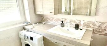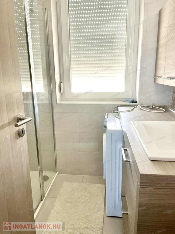 A szoba laminált parkettával, a többi helyiség minőségi járólappal burkolt. A fűtésről és meleg vízről Bosch egyedi kondenzációs kazán gondoskodik padlófűtéssel. A nappaliban és a szobában hűtő-fűtő klíma található, így a nyári hőségben garantált a kellemes környezet. A műanyag nyílászárók redőnnyel és szúnyoghálóval felszereltek. A lakás alacsony rezsivel fenntartható.