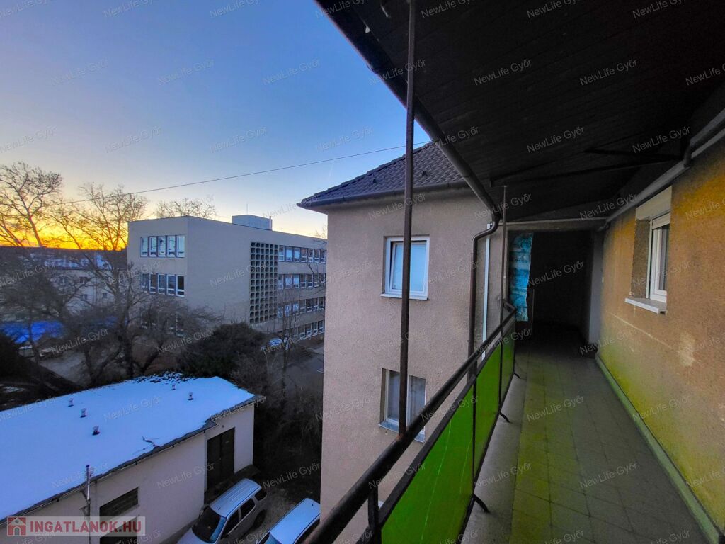 Győr Nádorvárosban, a Bartók Béla úton vár Téged egy jó állapotú, azonnal költözhető, 54 m2-es, 2 szobás, részben felújított, erkélyes téglalakás zöld övezetre néző panorámás kilátással, saját tárolóval és ingyenes, állandó parkolóhellyel