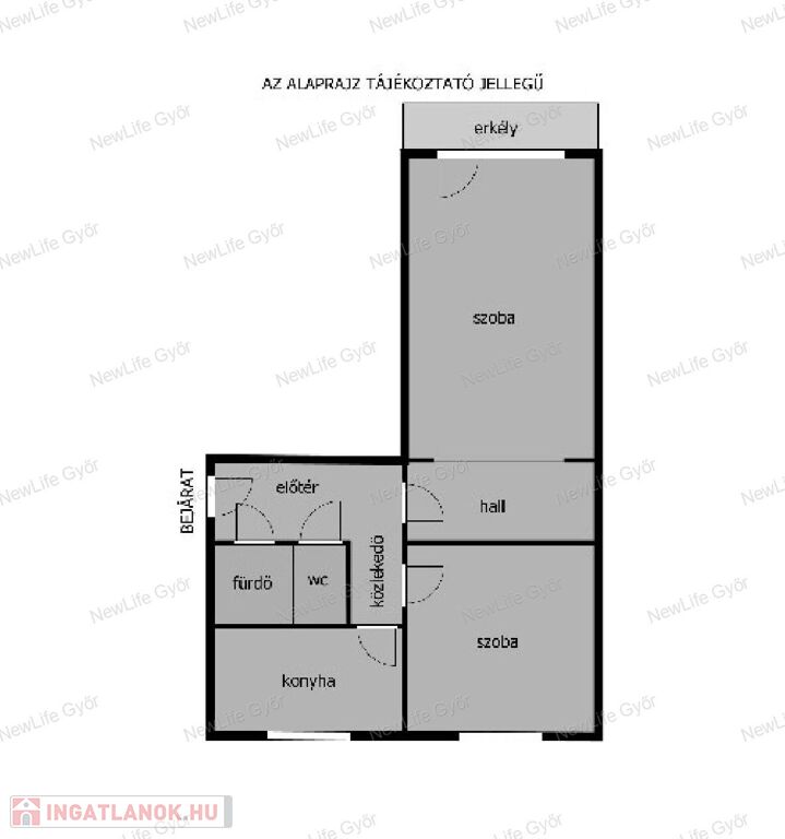 Praktikus 2 szoba + hall elosztás