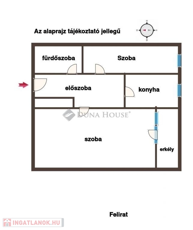 37 m²-es lakótér: nappali, félszoba, konyha, fürdőszoba, erkély