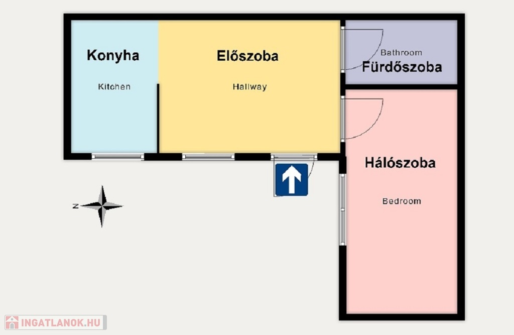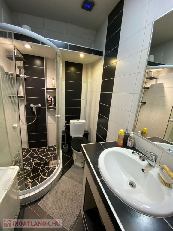 Az ingatlanban található egy fürdőszoba zuhanyzóval, wc-vel; étkező-konyha egybenyitva; egy szoba, melyben galériás megoldással került kialakításra a hálórész.