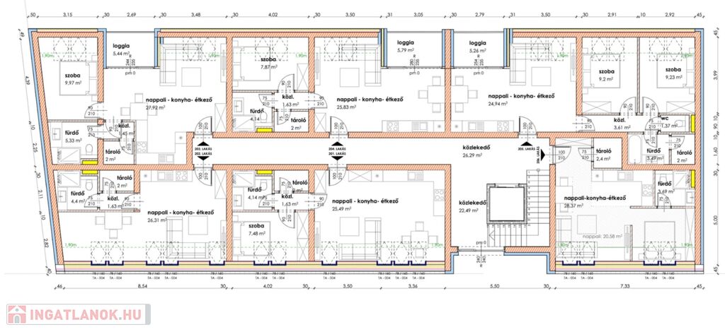 Makón, presztizs lokációval rendelkező - Makói fürdőtől 60 méterre, a Napfény Residenceben - a Páva utcában , Eladó egy most induló, tégla építésű, MÁSODIK EMELETI , 34,46 nm-es élettérrel rendelkező, amerikai konyha nappali - egy szobás - lakás (206.lakás).