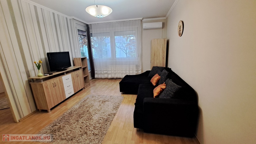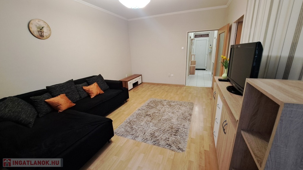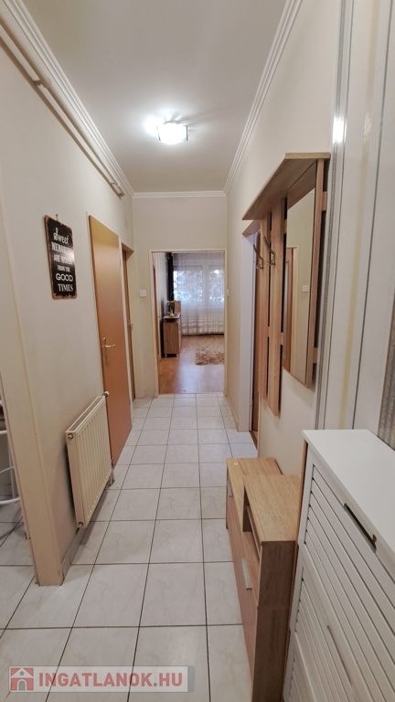 A lakás nappaliból és két külön nyíló szobából áll, a járólapos és laminált padlós helyiségek ápoltak, rendezettek. A fürdő és a WC külön helyiségben található, a spájz és a beépített konyha pedig praktikus megoldásokat kínál a mindennapokban.