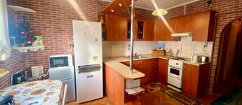 A vételár tartalmazza a képeken látható teljes bútorzatot és a teljes gépesítést is, beleértve a hűtőszekrényt és a mosógépet.