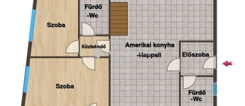 90 m2 alapterületű lakás, belső 2 szintes, amerikai konyha-nappali+ 3 hálószoba+ 2 fürdőszoba elosztással
