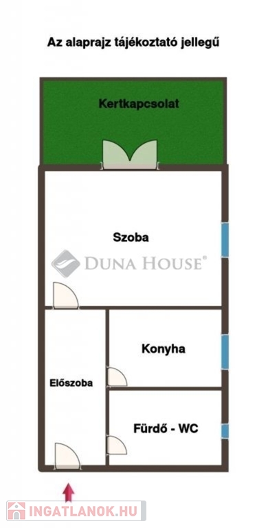 A fűtésről gázkonvektor gondoskodik, a nagyobbik szobából pedig közvetlen kijárat nyílik egy hangulatos, kis belső udvarra, amely ideális helyszíne lehet a reggeli kávézásnak vagy a nyugodt pihenésnek.