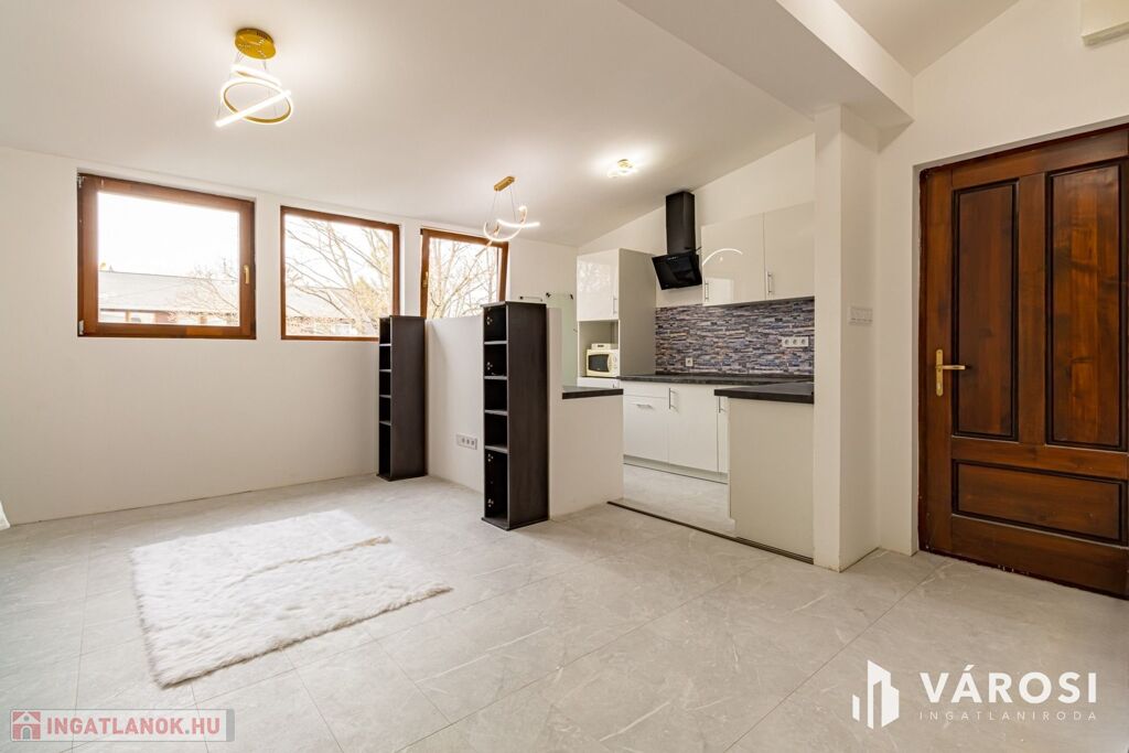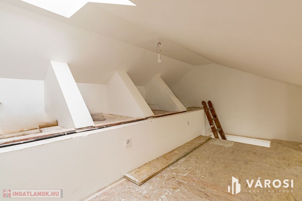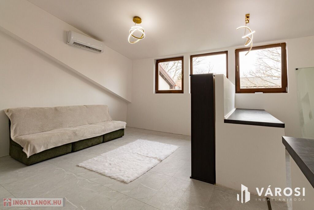 For sale in Pomáz, on Deák Ferenc Street, a 38 sqm, attic apartment with a gallery, air-conditioned, brick-built, held in undivided joint ownership but with a usage-sharing agreement, therefore eligible for mortgage financing.
