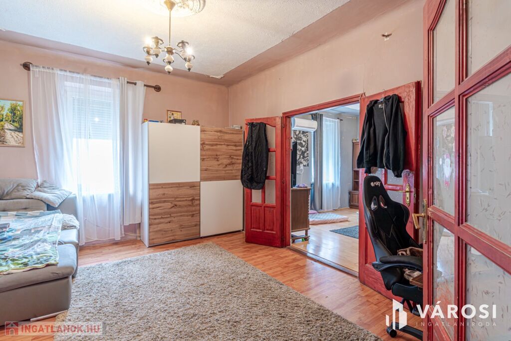 Szeged Rókus városrészében, a Tavasz utcában, eladó, egy 1950- ben épült, ELSŐ emeleti, Felújítandó állapotú 75 nm - es,tégla építésű, nappalival, plusz két szobával rendelkező lakás.