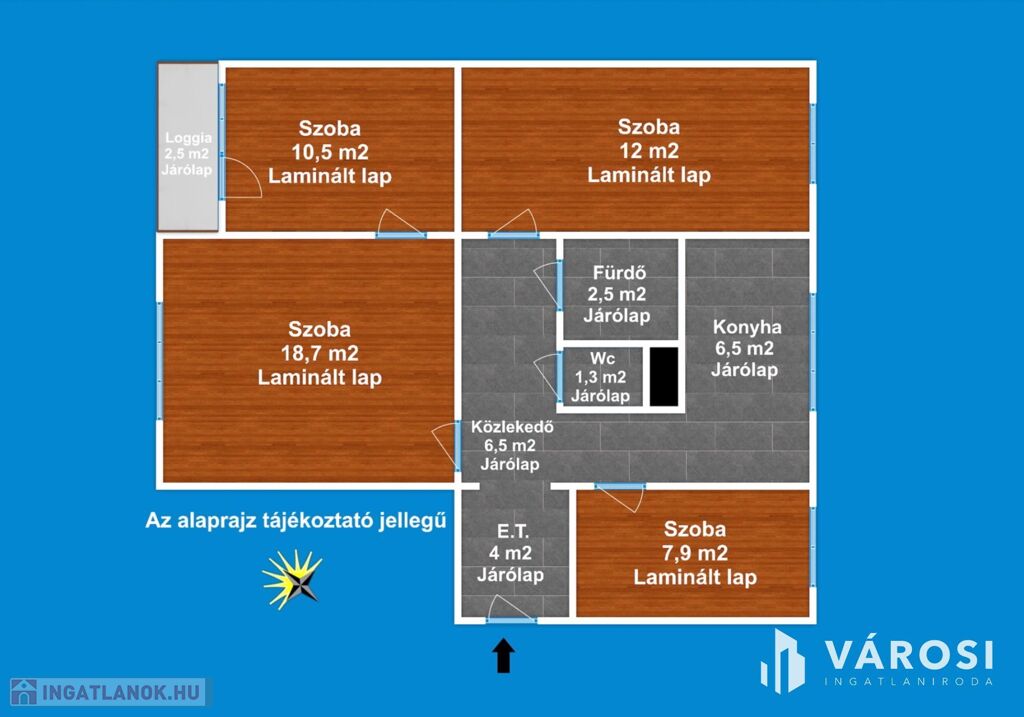 A lakás 1 db nappalival, 3 db hálószobával, 1 db fürdőszobával, külön Wc-vel, közlekedővel, loggiával rendelkezik. Az ingatlan elhelyezkedésre, kialakítása miatt rendkívül sokrétű a felhasználása - akár lakás, vagy befektetési célra -, amely maximálisan kiemeli ezt az ingatlant az átlagos lakások sorából és egyedülálló választássá teszi azt.