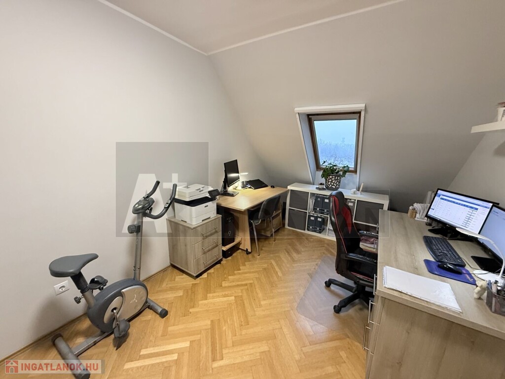 itt van kialakítva a szülői hálószoba is és egy kádas fürdőszoba , külön wc és egy kamra is