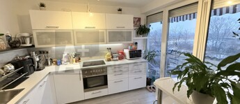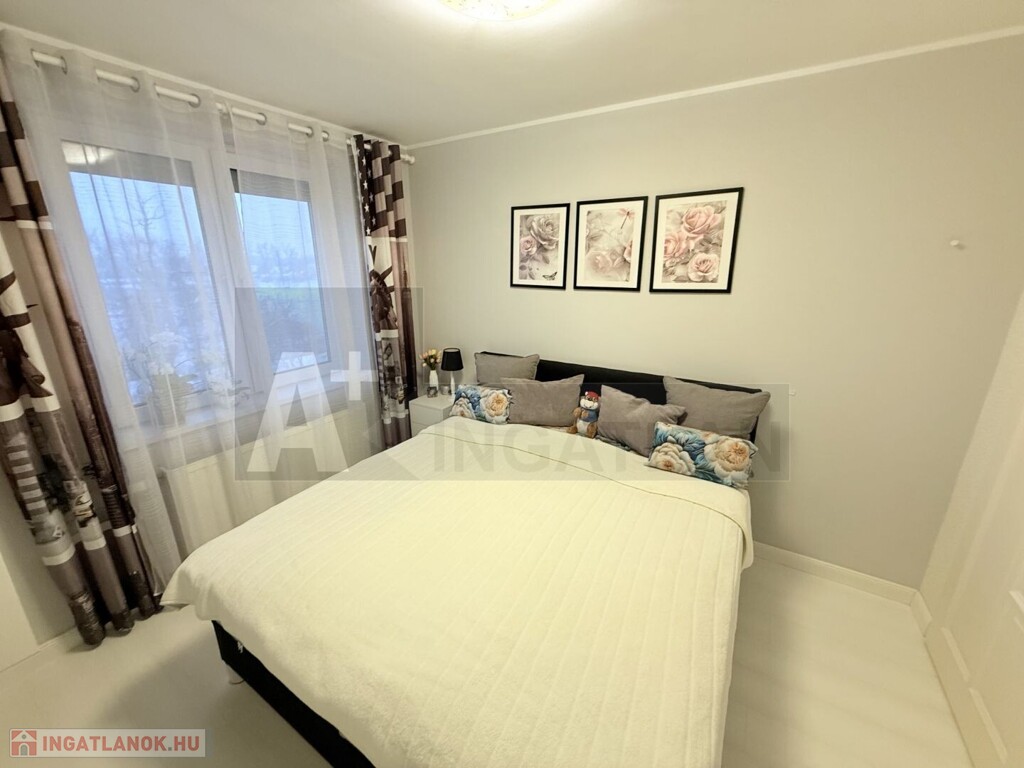 A lakás teljesen korszerű , műanyag hőszigetelt ablakok , Weissmann kondenzációs kazán , hűtő-fűtő klímák , modern burkolatok , magasfényű konyhabútor , háztartási gépekkel ...