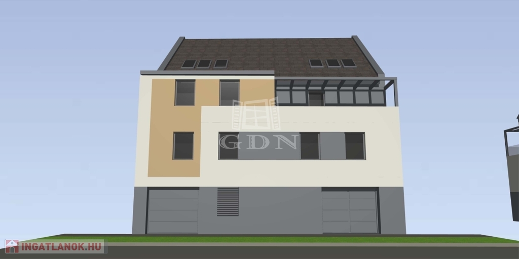 A kettő szintes, tetőtér-beépítéses épület modern megoldásai, nagy üvegfelületei és minőségi anyaghasználata világos, élhető tereket biztosítanak.
