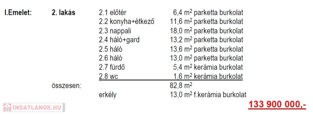 Irányár: 133,9 millió Ft