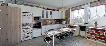 A lakás központi tere vitathatatlanul az amerikai konyhás nappali, beépített konyhabútorral és gépesítéssel (BOSH mosogatógép, Gorenje mikro, Whirlpool sütő, Elektrolux főzőlap, páraelszívó). A nappaliból csatlakozik le a 19 m2-es fedett erkély, mely kellemes helyszíne lehet akár baráti/családi összejöveteleknek. Kialakításra került a kádas fürdőszobán túl egy vendég WC is, mely a nappali és a gyerekszoba között helyezkedik el. A jelenleg 23 m2-es gyerekszoba két különálló szoba egyesítésével alakult ki a gardróbbal egyetemben. Az eredeti állapot némi átalakítással visszaállítható, így a lakás akár 4 szobássá is tehető. A lakás tartozékai a méretre készített bútorok és berendezések, amik színben harmonizálnak egymással, együtt alkotva egy esztétikus egészet. A jelenleg szülői hálószobából további 5 m2-es erkély csatlakozik le, mely szintén a belső kertre néz.