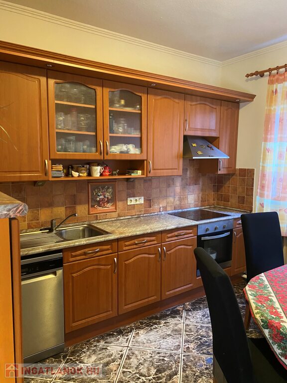 O casă familială cu două etaje de vânzare în Zalakomar, la 5 km de Zalakaros, de la un singur proprietar. Proprietatea este confortabilă, răspunde tuturor nevoilor și are o suprafață de 180 de metri pătrați. Există un living spațios, două dormitoare mari, trei semi dormitoare, un dulap de haine, două băi, o toaletă separată, o bucătărie bine utilată, o cămară, un cazan și un garaj. Bucătăria este dotată cu mașină de spălat vase, aragaz și cuptor electric, hotă și frigider încorporat. Garajul dispune de atelier si spatiu de depozitare destul de mare. Încălzirea este asigurată de un cazan cu combustibil mixt Totya 55. Cazanul pe gaz nu a mai fost folosit de ani de zile. Casa este dotata cu aer conditionat. Apa calda este asigurata de un cazan pe gaz, dar este disponibil si un cazan electric. Imobilul este situat pe un teren de 3000 mp. Terasa sa spațioasă, confortabilă, orientată spre est, poate fi bine utilizată. Există o anexă, un prăjitor de slănină și un cuptor în curte. În grădină sunt pomi fructiferi bine îngrijiți. Proprietatea a fost construită în 1980 din cărămidă și a suferit mai multe renovări de atunci. Ferestrele exterioare au fost înlocuite în 2005, cu izolație termică, obloane din plastic și plase de țânțari. Izolarea, tencuiala și vopsirea pereților exteriori au fost finalizate în 2006. În anul 2008, conductele de apă (2 apometre - apometre separate pentru irigații) și rețeaua electrică (3X20 amperi, 3 faze), precum și învelișurile interioare au fost înlocuite complet. În 2024, gardul din fața străzii a fost renovat. Proprietatea este orientata E-V, luminoasa, prietenoasa, spatioasa, extrem de bine amplasata, negravata, si are relatii ordonate de proprietate. Il recomand pentru familii. Poate fi transformat intr-o locuinta moderna cu un mic imprumut, daca se doreste. Poate fi rezolvată cu un grant pentru renovarea casei de 3,8 milioane!