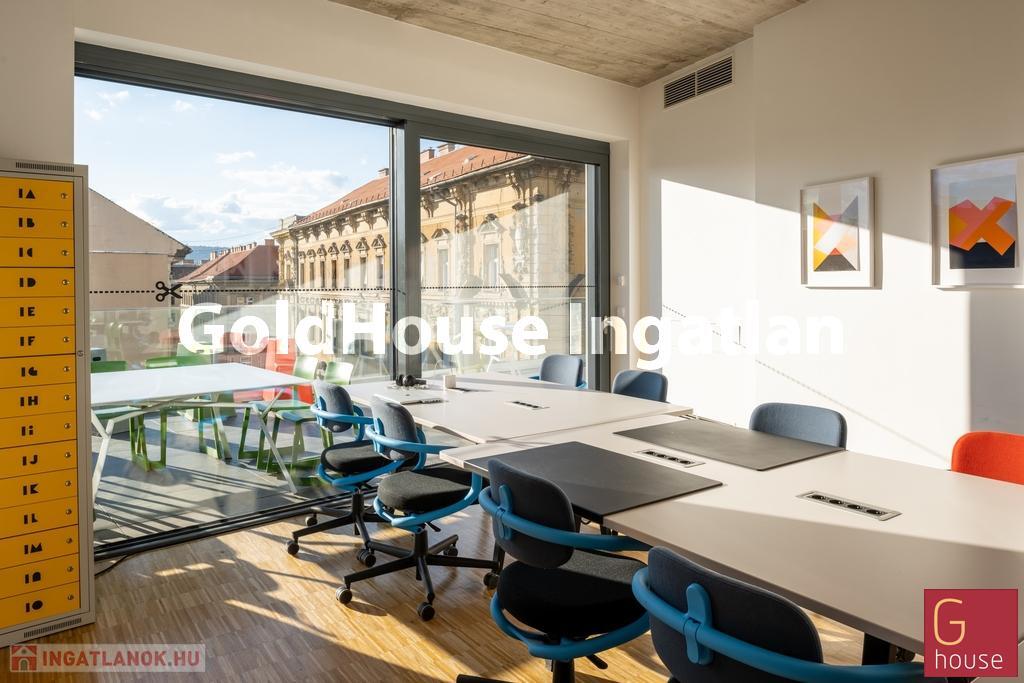 - A 6. emeleti penthouse szint csodás városi kilátással, 3 külön teraszra nyíló tárgyalóval, felszerelt konyhával, egy igazi kuriózum, amelyhez két zuhanyzós vizesblokk és egy raktárhelyiség is tartozik.