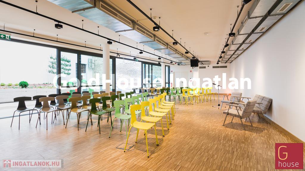 - A ház egyik legizgalmasabb tere a tágas és sokoldalúan hasznosítható kertkapcsolatos földszinti tér, amely használható akár egylégterű irodaként, közösségi- vagy rendezvénytérként is. Igény szerint alakítható, kávézóként, kantinként vagy kiállítótérként is hasznosítható terület.