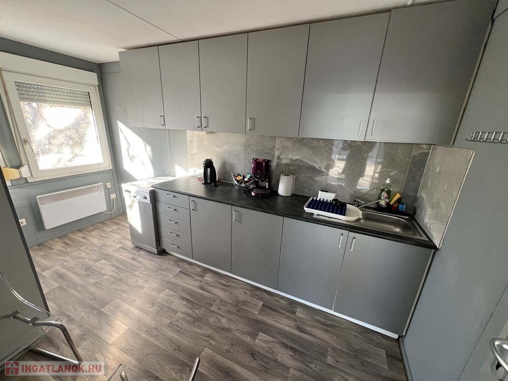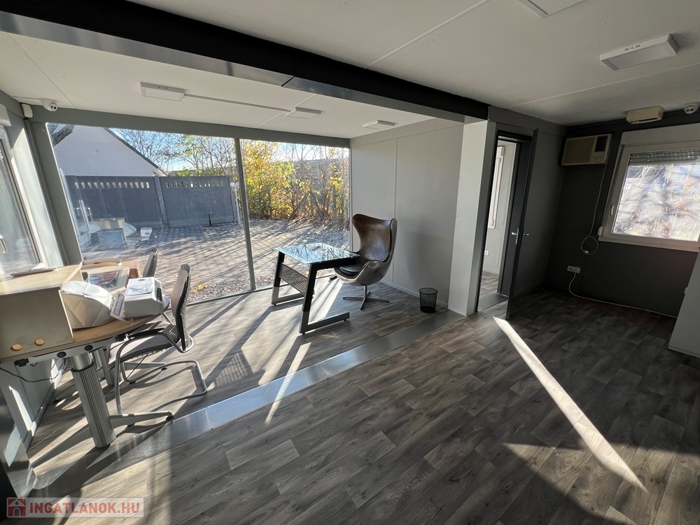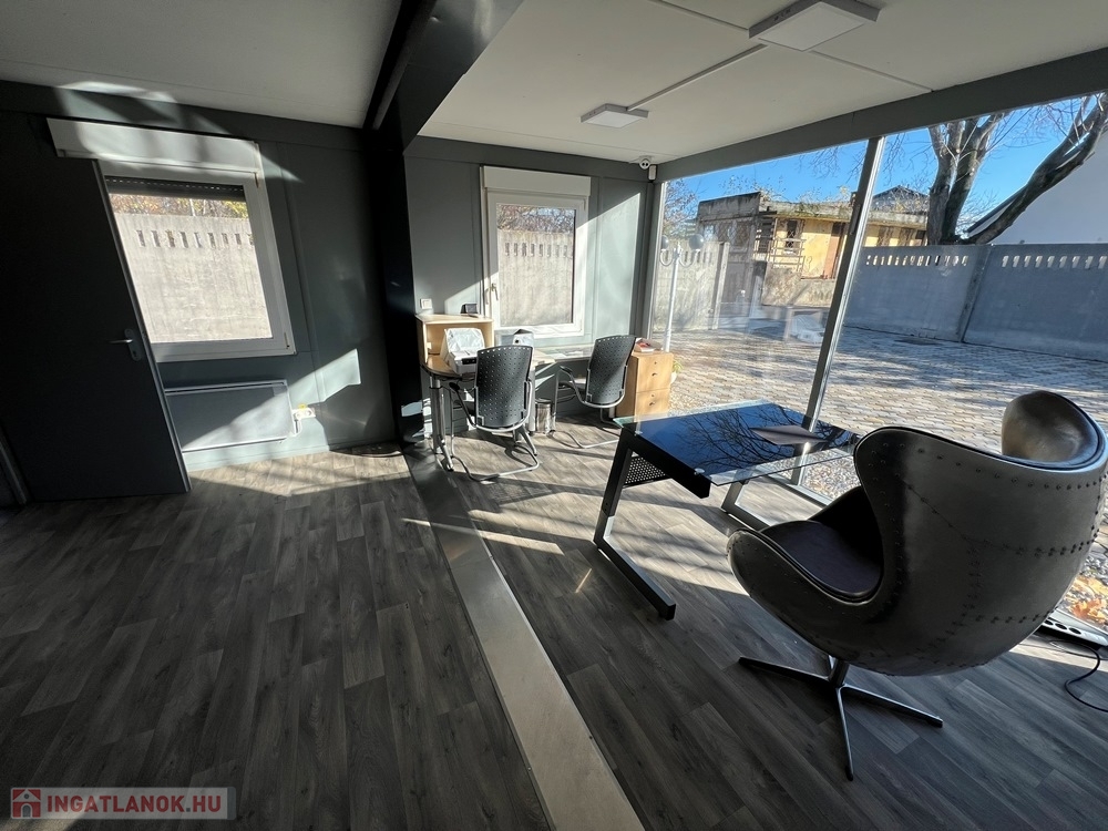 Győr-Gyárváros rendkívül kedvelt, klasszikus részén, Ipari Parktól, M1-es autópályától, Belvárostól alig pár perces autótávolságra, aszfaltos útról megközelíthető, ipari kamerával és térvilágítással ellátott, 55.000 m2-es (5,5 ha) telekből, leválasztott, körbekerített, - 4 db személygépkocsi pakolását biztosító – térkövezett, 250 m2-nyi területen lévő, 22,08 m2-es üzlettérből/irodából, továbbá 4,83 m2-es irodából álló, saját konyha – étkezővel és saját szociális egységgel felszerelt, összesen 40 m2-es jelentős részben bútorozott, KLIMATIZÁLT 3 db 20 lábas konténerből álló iroda/bemutatóterem/üzlethelyiség sokrétű felhasználhatóság lehetőségével kiadó!