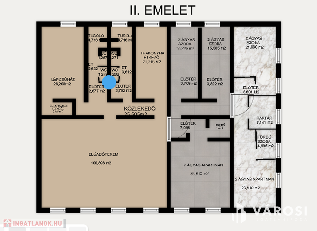 A kiadásra váró ingatlanrészek 2 szinten helyezkednek el, külön bejáratú megközelítéssel rendelkeznek. Minden szinthez tartozik saját, tudatosan megtervezett szociális blokk és az