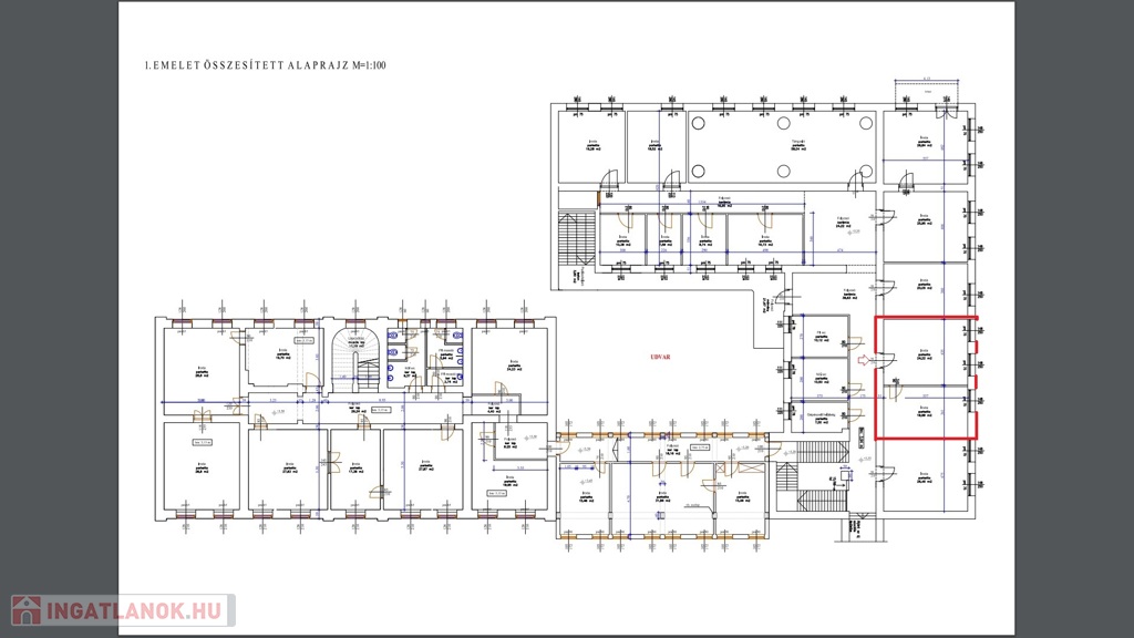 Miskolc belvárosában, a Zsolcai kapuban, patinás, monarchia korabeli 2 szintes, műszakilag és esztétikalag is frissen felújított, alacsony rezsijű irodaházban, 20-700 nm-es irodahelyiségek, szociális helyiségekkel kiadók.