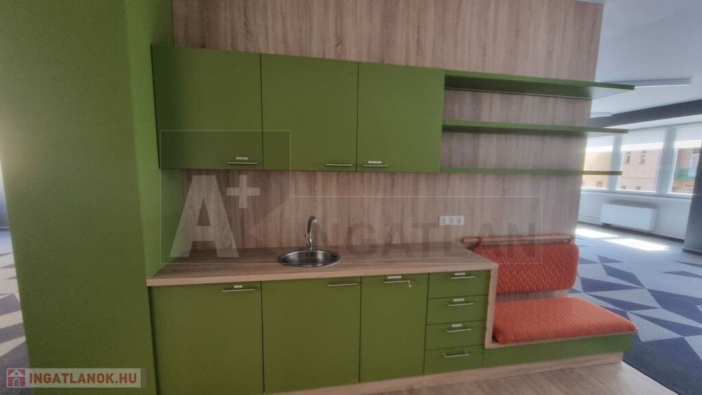Szeged Belvárosában, a Kígyó utcában, felújított irodaházban kiadó ez a 2. emeleti, lifttel megközelíthető modern iroda tárgyalókkal, felszerelt konyhával, zuhanyzós mosdókkal
