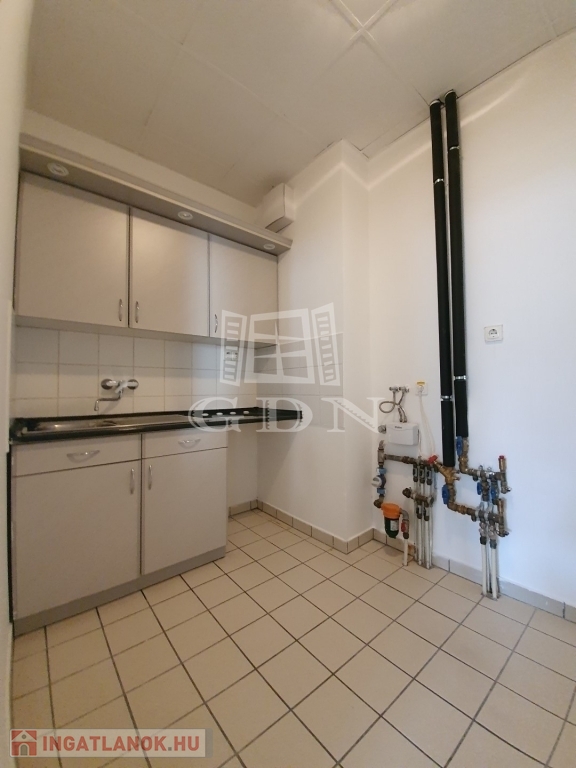 A klimatizált iroda risztóval felszerelt, fűtéséről és a melegvízről önállóan mérhető gázkazán gondoskodik. Az épületben lift nincs. Parkolás az épület előtt az utcán lehetséges.