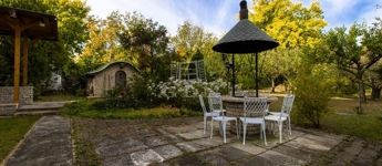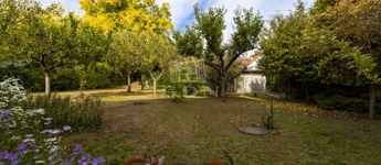 A kert rendezett és gondozott, folyton termő gyümölcsfákkal, szerszámtárolóval, valamint egy különálló, zöldség-gyümölcs tárolására alkalmas pincével.