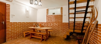 - Pinceszint: igazi különlegesség — egy borozó jellegű társalgó, tárolók és a gépészet kapott helyet.