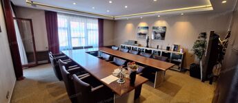 - hangszigetelt bőr tárgyalóajtó, rejtett LED világítások,