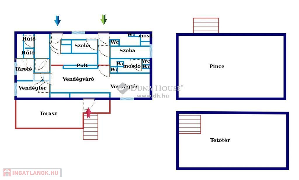 Tápiógyörgye központjában eladó pizzériaként működött hatalmas épületkomplexum. (700 m2). Az alap 22x23 m. 2000 körül lett étterem - ma már nem üzemel. A 3 szintes téglaház szuterén pincéjében rengeteg helyiség található - valamint 2 db vegyestüzelésű kazán. Közművek közül: villany, víz bevezetésre került - csatorna pedig az udvaron telálható. A villanyóra 2x45w és 380V is bevezetésre került. Az épületbe 2 db klíma is beépítésre került.Az épületbe a nyitott teraszon át vezet az út, mely egy hatalmas vendégtérbe vezet be. Jobbra egy tágas helyiség található, ahol régebben az asztalok voltak. Szemben a pult. BAlra pedig egy másik helyiség. A pult jobb oldalán találjuk a személyzeti/vendég mosdókat. Több zuhanyzó és mellékhelyiség is rendelkezésre áll a vendégek részére. Mellettük egy pihenő szoba is kialakításra került. A pult bal oldalán több nagyobb csarnok (áru raktározására is alkalmas, valamint 2 db hűtőtér található. HÁtul pedig 2 bejárat az áruszállításra is alkalmas.Telek 1129 m2, melyre több autó beállási lehetőség is van!Tetőtere is beépíthető. Az egész épület alatt pince található, ahol a fűtésrendszer került kialakításra és több helyiség, mely tárolásra, előkészítésre alkalmas.Az ingaltan 1/1 tulajtól tehermentesen azonnal birtokba vehető. NÉzzük meg együtt és tegyen ajánlatot!Minden a közelben található néhány méterre: ABC, dohánybolt, művelődési ház, iskola, óvoda stb.Közlekedés: Vonattal Budapest Keleti Pu- Szolnok között!