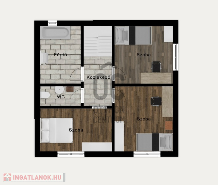 1 földszinti szoba (nappali), 3 emeleti hálószoba