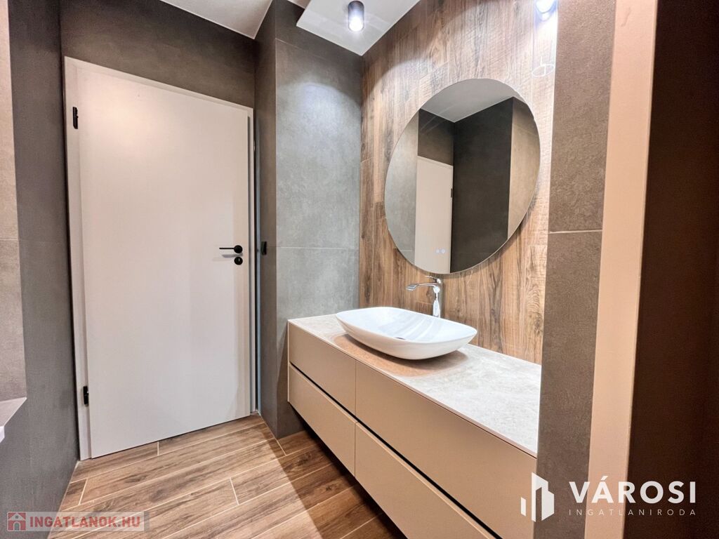 Pe una dintre cele mai aglomerate bulevarde din Debrețin, la ultimul etaj (etajul 8) al emblematicului condominiu Egyetem Tower, este de vânzare un apartament de lux nou construit, de 91 m², din categoria premium. Apartamentul este orientat spre sud-sud-vest, fiind astfel scăldat în lumină pe tot parcursul zilei. Fiecare cameră are acces direct la terasa panoramică de 34 m², unde se poate chiar crea o bucătărie exterioară, oferind o vedere uimitoare asupra centrului orașului Debrețin. Interiorul atent proiectat include: - living cu bucătărie americană + sufragerie, - două dormitoare cu dulapuri, - două băi. Bucătăria este complet mecanizată, electrocasnicele încorporate reprezintă cea mai înaltă calitate. Interiorul apartamentului a fost proiectat de un designer, toate materialele și suprafețele încorporate fiind de categorie premium. Printre facilitățile unice ale casei se numără: - piscină panoramică și saună cu vedere asupra clădirii principale a Universității din Debrețin - jacuzzi și terasă la soare pe acoperiș - recepție deschisă 24 de ore din 24 - restaurant la parter Apartamentul are încălzire prin pardoseală și sistem de răcire-încălzire cu ventiloconvector. Prețul de achiziție include obiecte sanitare, corpuri de iluminat, mobilă de bucătărie la comandă, jaluzele electrice și toată mobila încorporată. Dacă doriți să trăiți în lux adevărat, sunați-ne cu încredere! Gabriella Hevele +36 20 213 1109 (Vă rugăm să sunați pentru mai multe poze și informații!)