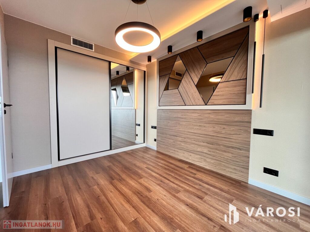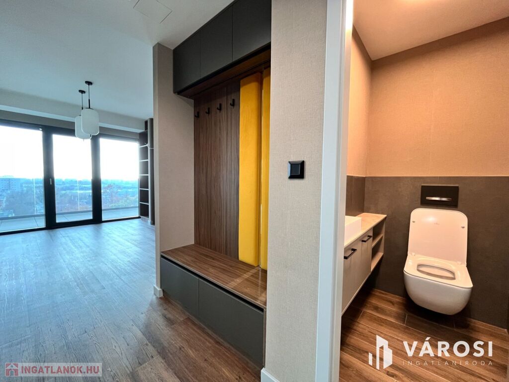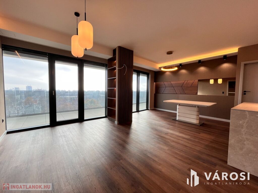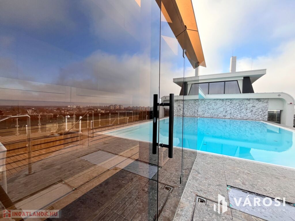 Debrecen egyik legfrekventáltabb sugárútján, az ikonikus Egyetem Tower társasház legfelső lakószintjén (8. emelet) eladó egy új építésű, 91 m²-es, prémium kategóriás luxuslakás.