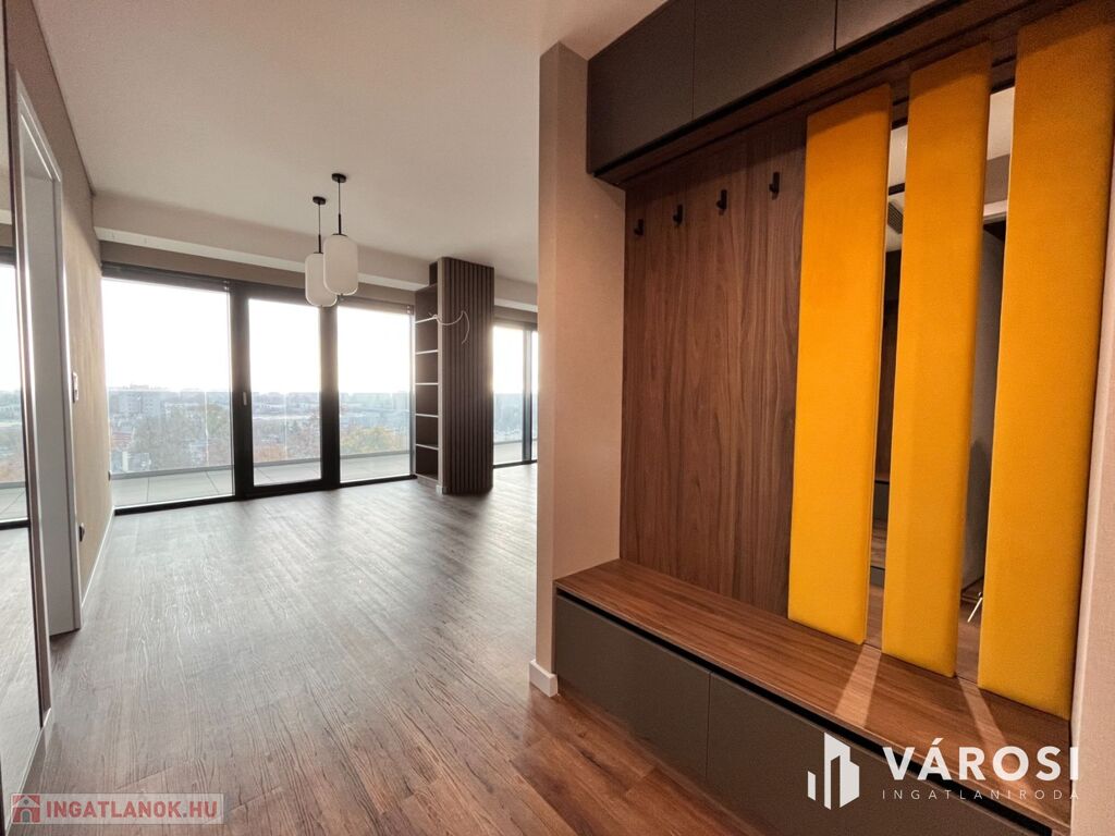 A lakás dél–délnyugati fekvésű, így egész nap fényárban úszik. Minden szobából közvetlen kijárat nyílik a 34 m²-es panorámás teraszra, ahol akár egy külső konyha is kialakítható, innen lenyűgöző kilátás nyílik a debreceni belvárosra.
