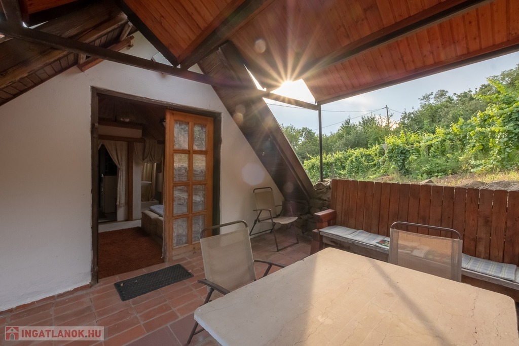 A 4457 m2-es szabálytalan alakú, enyhén lejtős telken épült KNY-i felvésű, belső hasznos területét tekintve 160 m2-es ház három különálló apartmanra tagolható, mindegyike külön külső terasszal, kialakított fürdőszobával, konyhával, hálóhelyiséggel rendelkezik. Ehhez csatlakozik egy 35 m2-es borospince a ház oldalában.