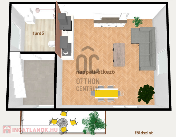 ✅ helyiségek elrendezése: 1. szinten konyha+nappali és fürdőszoba, valamint előszoba, 2. szinten hálószoba