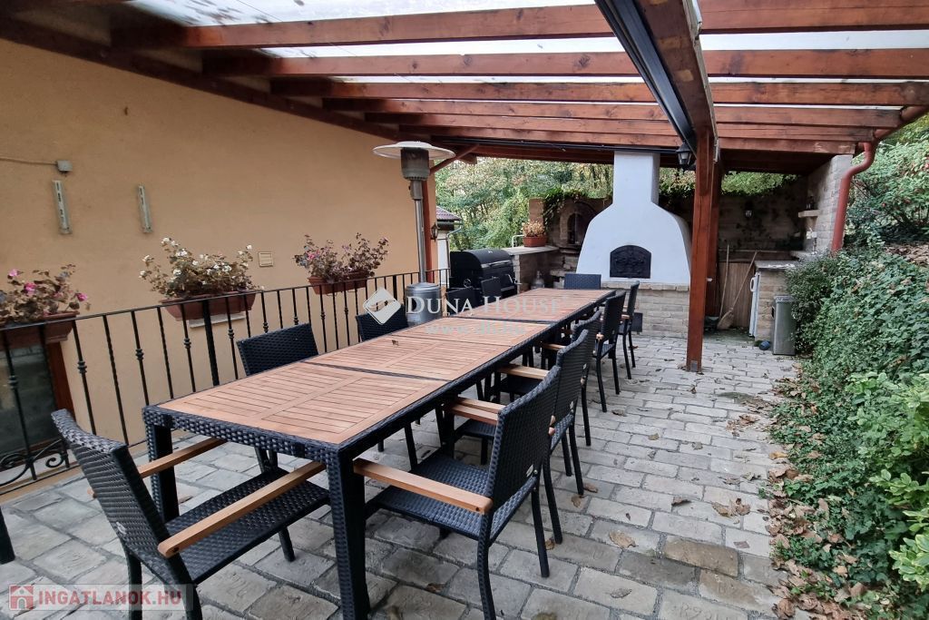 Ön is álmodozott már róla, hogy csendes, erdős környezetben, vízparton töltse a mindennapjait?Ez a ház tényleg a mesékből lépett ki! Komló-Sikonda tópartjánál kínálom megvételre ezt a leírhatatlanul hangulatos, káprázatosan szép környéken lévő családi házat és a hozzá tartozó kisebb vendégházat.A házat 2008-ban építették, majd 2018-ban teljes felújításon esett át. Az ablakok elektromos redőnnyel ellátottak, a helyiségekben egyedi hőfok szabályozó rendszer van és klímával felszereltek. Az amúgy is napfényes házban minden helyiség led világítással ellátott, amik külön bekötésüknek köszönhetően csodás hangulatvilágítást varázsolnak. Az ingatlanban riasztórendszer van kiépítve, és 3 széf is található. A kényelem érdekében a porszívó beépített, így könnyen használható bármelyik szobában cipekedés nélkül. A 3,5 szintes otthon a kifogástalan, beépített bútorzattal, extra és modern felszereltségével minden szükségletet kielégít: Egy szint a barátoknak: A legalsó szinten egy garázson át érkezünk a házba, ahonnan a hangulatos közösségi térbe jutunk, gyönyörű borospincével, és egy külön fürdőszobás wellness helyiséggel (szauna, jacuzzi) Két szint a családnak: A földszinten (ami akár a garázsból, akár az udvarból is megközelíthető) a hatalmas, egylégterű étkező-konyha-nappali fogad minket. A konyha gépesített, minden háztartási cikkel felszerelt. Ezen a szinten még egy dolgozószoba és egy fürdőszoba vár ránk. Egy emelettel feljebb találjuk a 3 hálószobát, valamint a különálló fürdőt és illemhelyiséget. A szobák mindegyike óriási beépített szekrényekkel vagy gardróbbal ellátott, így bőven jut hely a ruháknak is. A tó felé néző szobának erkélyéről pedig csodás látványban lehet részünk nap, mint nap.Egy fél szint az elvonulni vágyóknak: Az emeletről egy csigalépcsőn át egy kicsike toronyszobába érkezünk, ami mind a 4 falán ablakokkal van ellátva, hogy a tó és az erdő minden napszakának minden pillanatával ámulatba ejtsen minket. A helyiség kiválóan alkalmas szivarszobának is a mennyezetbe beépített szagelszívóknak köszönhetően.Egy udvar a természetbe vágyóknak: A ház bejáratánál már rögtön egy nagy nyitott terasz vár ránk, azonban ha hátramegyünk a kertbe, akkor egy erdő által körülölelt, fedett, hatalmas teraszra érkezünk, kemencével, grillel. A 600 nm-es udvaron belül egy kapun át a vendégházhoz jutunk, aminek intim, hangulatos kertjében a pavilonban ülve várhatjuk, hogy a legfinomabb falatok a bográcsban elkészüljenek.Egy ház a vendégek számára: A kis házban egy konyha, egy fürdőszoba és 2 szoba található, amikből egy fedett teraszra lehet kiülni. A ház alsó szintjében is van egy garázs tárolókkal, valamint egy fedett autóbeálló.A 2 ingatlan külön is megközelíthető, az utcafrontról mindkettőbe 1-1 elektromos kapun át jutunk. A házak előtt még bőven van hely még több autó számára is. A házakban a berendezés marad, így a képeken látható teljes egészében vásárolható meg. Kifejezetten ajánlom családok számára, akik egy tökéletes otthonra vágynak a várostól elvonultan, de mégis közel. A vízpartot és a természetet kedvelőknek is egy kihagyhatatlan lehetőség, hiszen a tó kb. 1,5 perc sétára található a háztól. Az ingatlan az adottságainak köszönhetően kiváló befektetés, a turisták és kirándulók kedvenc vendégháza lenne a környéken! És még berendeznie sem kell! Keressen bátran, nézzük meg együtt új otthonát! Az ingatlan cég tulajdonában áll, az ár 158.000.000 Ft + ÁFA, azaz bruttó 200.000.000 Ft!