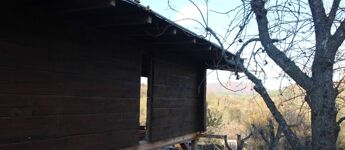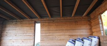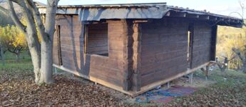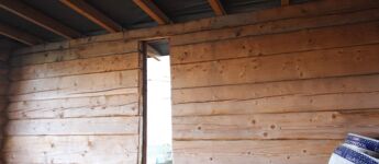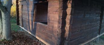 A rönkház szerkezete már készen van, a tetővel együtt. A nyílászárókat, az alsó padozatot, és a mennyezeti szigetelést kell még beépíteni.