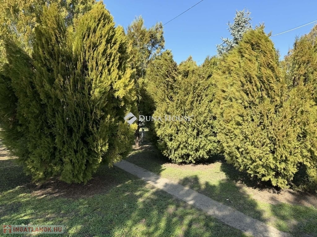 Rendezett telek, örökzöldek díszítik az udvar egy részét. Teljesen körbe kerített 720 m2-es telek.